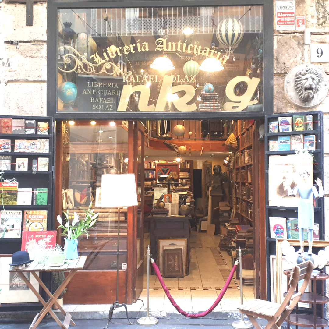 Librería Anticuario Rafael Solaz (Valencia). Su fachada exterior nos anuncia el auténtico paraíso que se esconde en su interior. De marcado estilo ‘british’ evoca los encantos de las libreras de antaño y nos trasporta a la época victoriana. Rafael Solaz, su propietario, está considerado como el librero de colecciones antiguas más joven de Europa.
